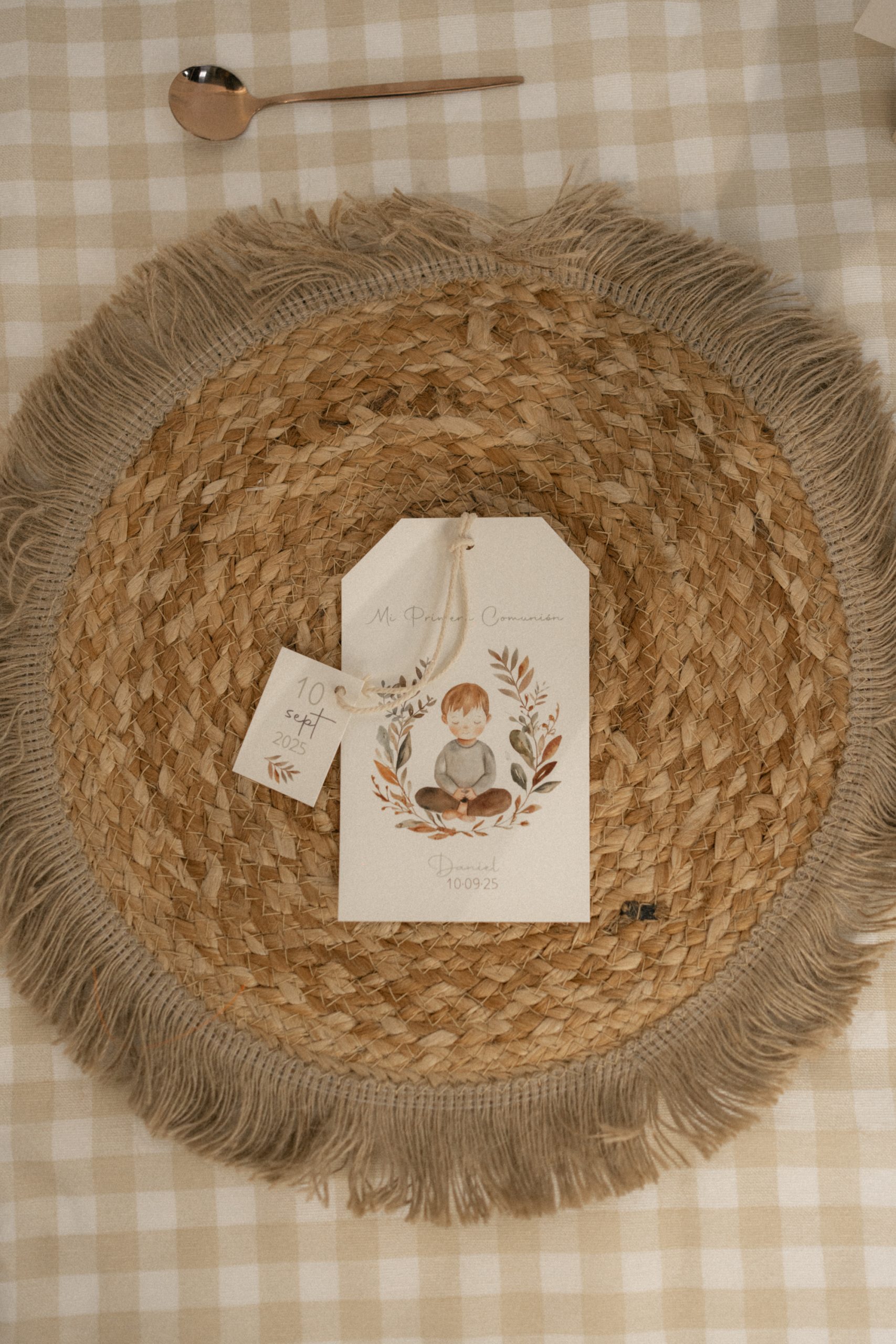 Incluye también una cuerda blanca de la que cuelga una pequeña etiqueta personalizada, manteniendo el estilo de la colección y convirtiéndolo en un recuerdo aún más especial.